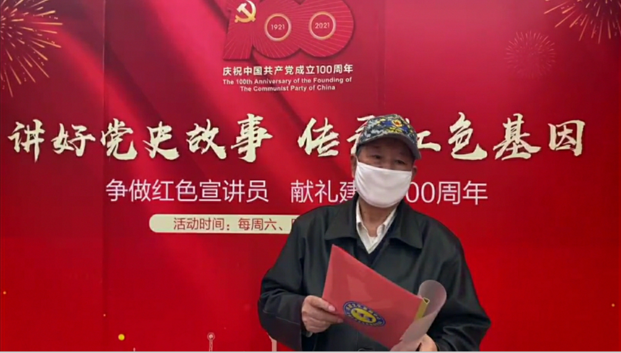 中心老黨員、原黨委書記羅虎臣同志退休不褪色,離崗不離黨,時刻牢記自己是一名共產黨員。在黨史學習教育中,他深入社區講黨史故事,引導社區群眾銘記黨的光輝歷史,弘揚黨的優良傳統,傳承紅色基因,用自己的實際行動詮釋了一名老黨員對黨的忠誠和熱愛。(離退辦)