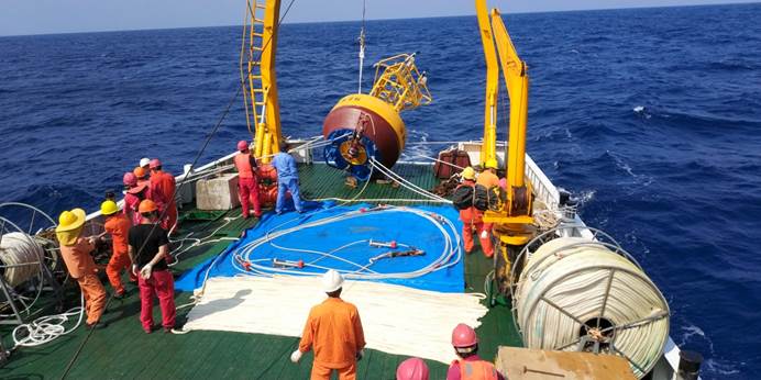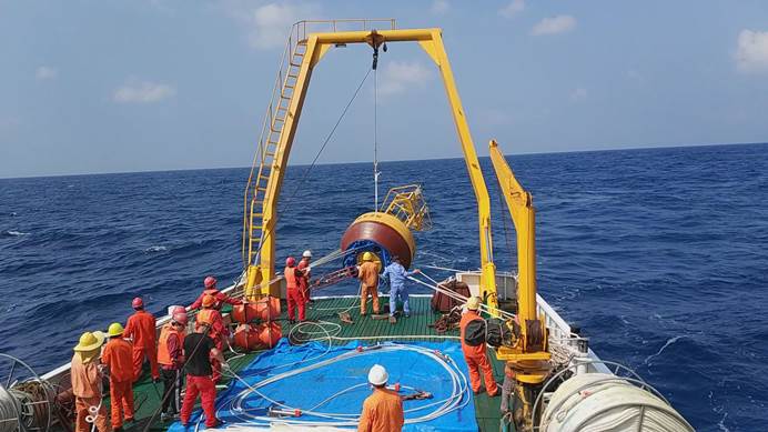 在2014年度海洋公益性行業科研重點專項“深遠海調查觀測重點基礎裝備產品化應用示范”項目支持下,我中心與天津市海華技術開發中心聯合研制的產品化深海錨系浮標于2018年4月1日在南海成功布放,并開始示范應用。