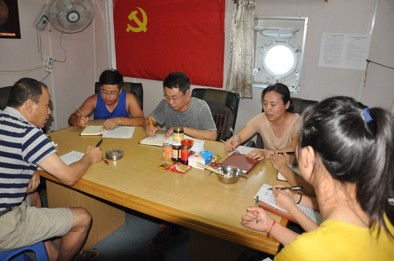 生物光學現(xiàn)場組長李芝鳳同志就本次試驗談了一些切身體會,工作中大家團結(jié)協(xié)作,擰成一股繩,勁往一處使,保質(zhì)保量獲取珍貴的現(xiàn)場數(shù)據(jù);生活中大家相互照應(yīng),克服了重重困難,讓她忘掉了出海前的憂慮和擔心。大氣光學現(xiàn)場測量組長賈迪同志指出要將材料內(nèi)容與出海實際情況相結(jié)合,用紀律和規(guī)矩約束自己,從而有利于指導行動,規(guī)范自身行為。學生黨員王婧例舉了發(fā)生在她身邊不按規(guī)矩辦事的實例,發(fā)人深省。學生黨員黃筱燦認為黨員同志應(yīng)當將黨的紀律和規(guī)矩作為約束自身的準則,為群眾樹立典范。