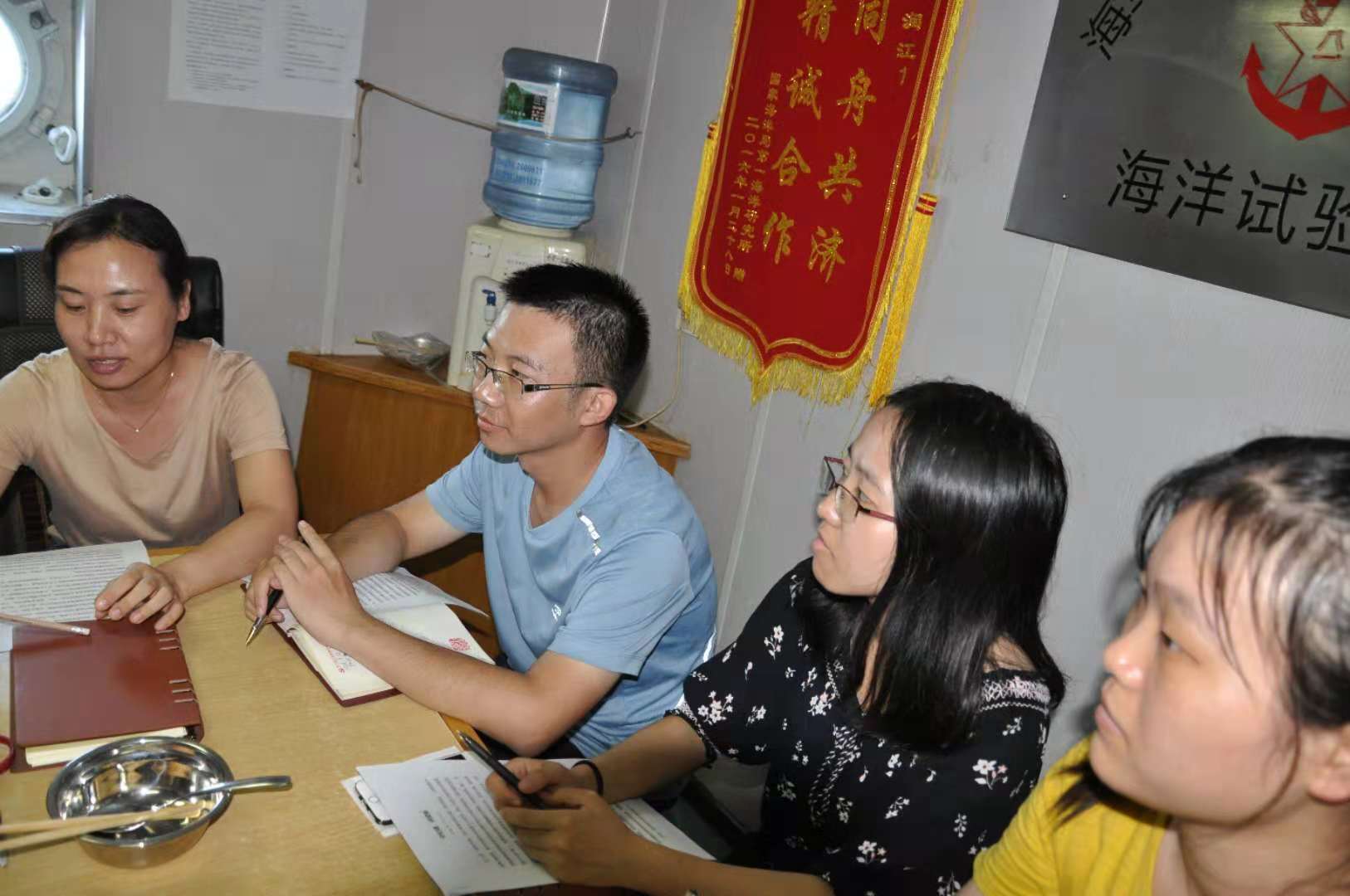 在海上試驗中隊員們一般會經(jīng)歷三種狀態(tài),從剛上船初期的興奮到中期的疲憊再到后期的焦慮。聯(lián)合黨小組將組織學習的時間、內(nèi)容與隊員們狀態(tài)結(jié)合起來,此次學習選擇在第二航段即將結(jié)束、試驗任務(wù)過半的階段,開展的非常及時,此時隊伍已磨合到位,既為試驗隊員避免疲憊期打氣鼓勁,也為后續(xù)的試驗任務(wù)的順利開展提供了堅強的組織保障。(遙感室)