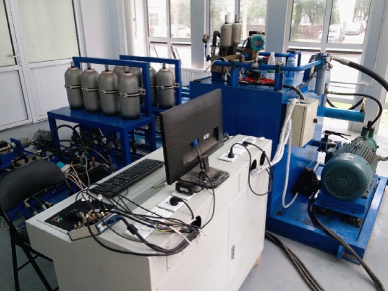 項目組利用液壓測試平臺分別模擬了不同海域不同波況條件下液壓裝置的輸入特性,對波浪能發電裝置液壓系統進行了測試,分析了液壓裝置的工作特性與效率。液壓系統包括:浮力擺液壓缸、液壓缸控制閥組、高壓蓄能器組、馬達發電機組、馬達控制閥組、低壓蓄能器組、補油系統和配套電控系統。液壓缸往復運動產生高壓液壓油,高壓油經過液壓缸控制閥組整流為單向流,經過馬達控制閥組帶動液壓馬達-發電機旋轉。試驗結果表明液壓系統在模擬的海域波況條件下均正常運行達到預期的設計要求。在測試完成的基礎上,現已將液壓系統安裝到浮式平臺設備艙內。(能源室)
