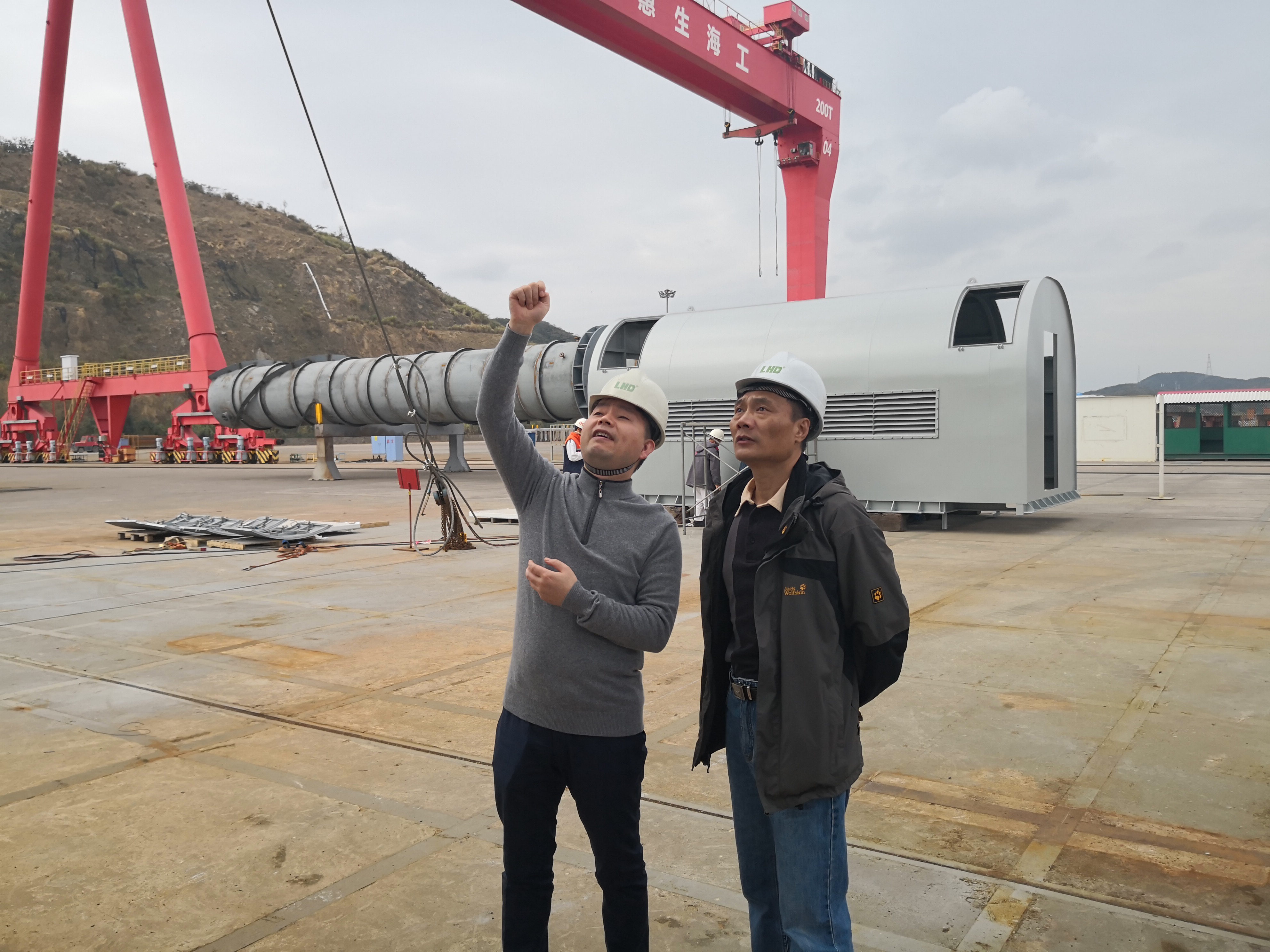 1115日,中心能源室測試與評價人員,赴浙江省舟山市岱山縣秀山島,對正在組裝、調試、預計11月—12月下水的“LHD林東模塊化大型海洋潮流能發電機組”400kW垂直軸潮流能發電機組和600kW水平軸潮流能發電機組進行現場調研。