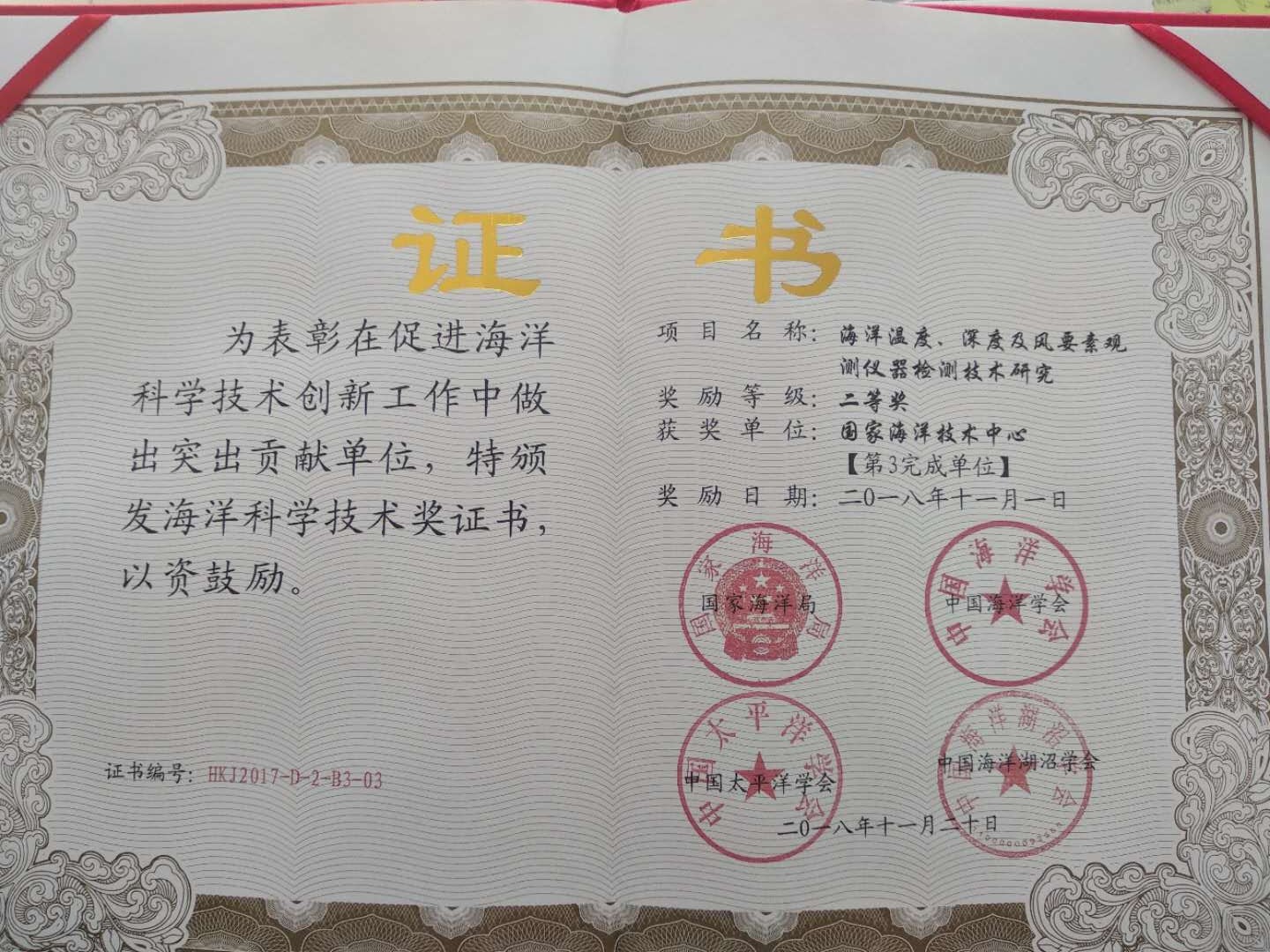 1120日,中國海洋學會、中國太平洋學會聯合主辦的第九屆海洋強國戰略論壇暨2017年度海洋科學技術獎頒獎儀式在廣西北海市舉行。在頒獎儀式上,我中心參與的“海洋溫度、深度及風要素觀測儀器檢測技術研究”項目獲得二等獎。