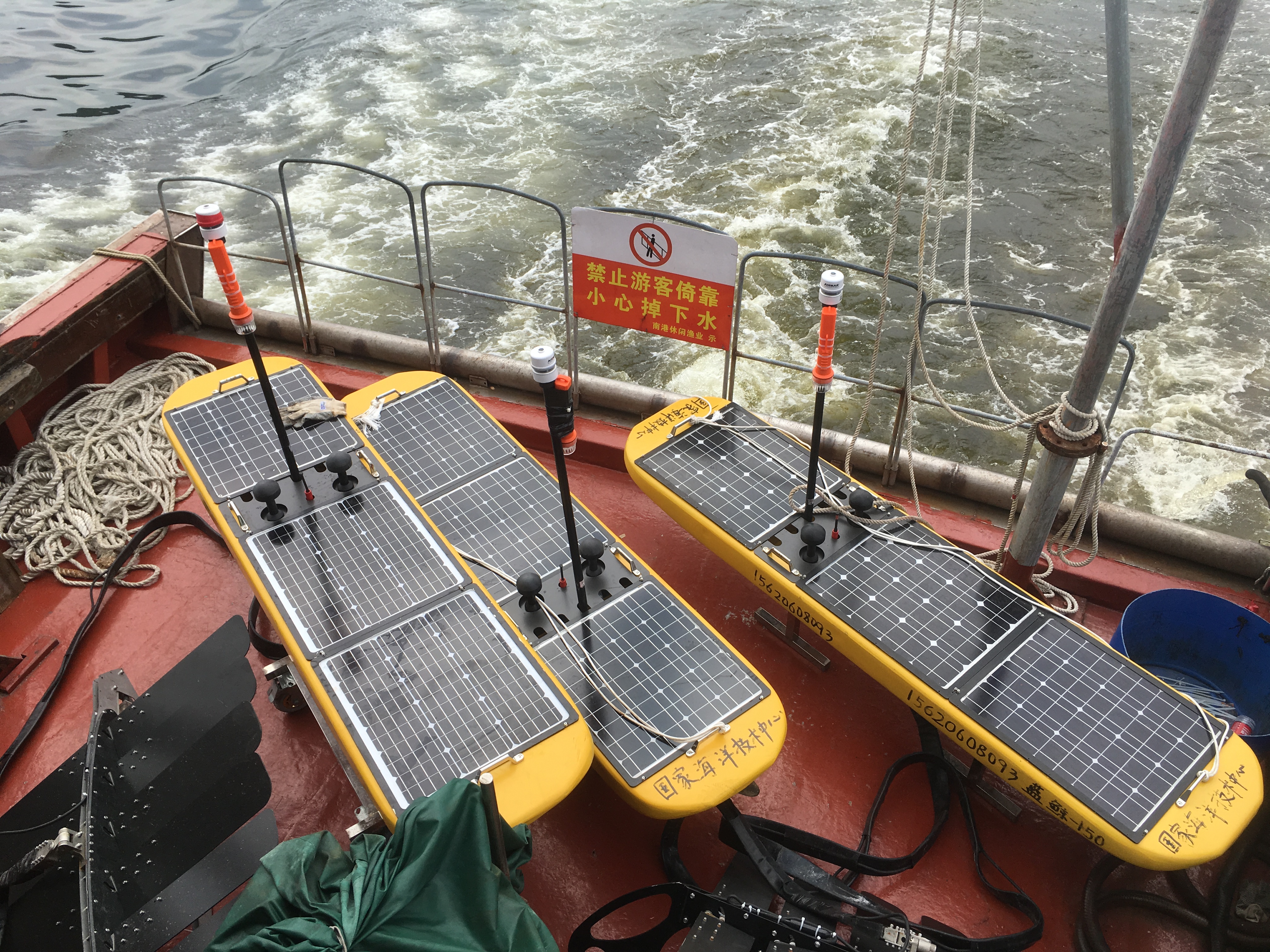 注:波浪滑翔機是一種利用波浪動力前進,利用太陽能發電作為儀器通訊、控制、定位、導航、傳感器數據采集的能量供應的新型海洋移動觀測平臺。國家海洋技術中心在863計劃、國家重點研發計劃、天津市科技支撐計劃及天津市自然基金的支持下完成了藍鯨系列波浪滑翔機的研制,已形成系列化的產品型號,累計在線超過一年,累計航行超過一萬公里,具備完善的布放、回收及實驗測量體系,為海洋環境監測提供了新的解決方案,可應用于海洋立體組網觀測、臺風觀測、海水水質監測、島礁守備、水下目標探測及水文觀測等領域。