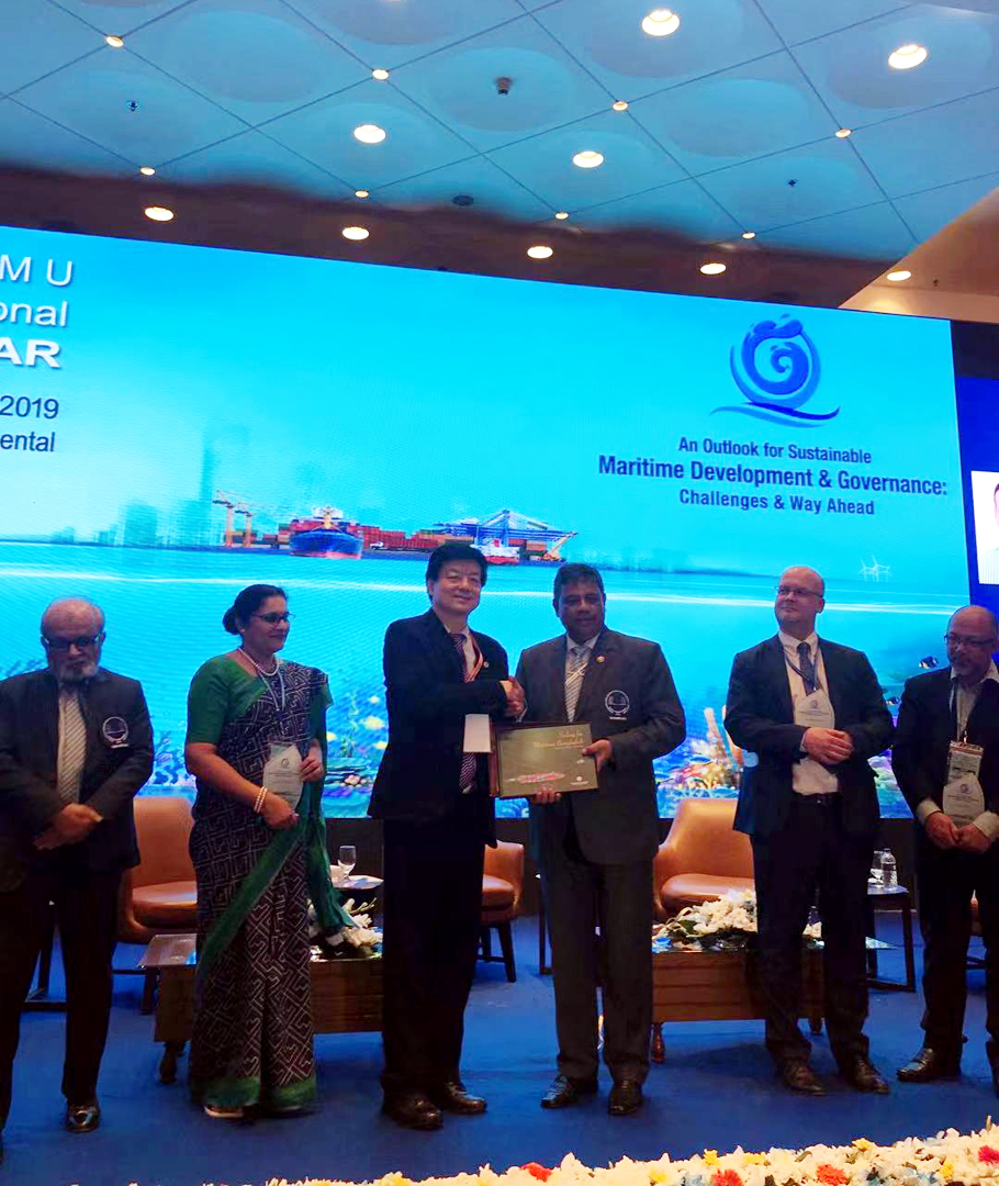 本次國際研討會設海洋連通和安全、海洋健康和治理、海洋技術和資源開發三個主題,孟加拉國規劃部部長、海軍總司令和教育部副部長出席研討會并致辭。會議邀請了15個國家和聯合國的近700名嘉賓參會,共同圍繞孟加拉國海洋科技發展和資源開發問題進行了研討。會議期間,陳武軍書記與中國駐孟加拉國大使館武官、孟加拉國海事大學校長、孟加拉國海軍海事發展研究所主席、孟加拉國藍色經濟辦公室主任、斯里蘭卡海軍前總司令、印度果阿大學教授、馬來西亞理工大學教授等進行了討論和合作交流。孟加拉國海事大學校長向陳武軍書記贈送了海事大學最新成果集,陳武軍書記作為嘉賓向作報告的英國、印度、馬來西亞和孟加拉國專家頒獎。