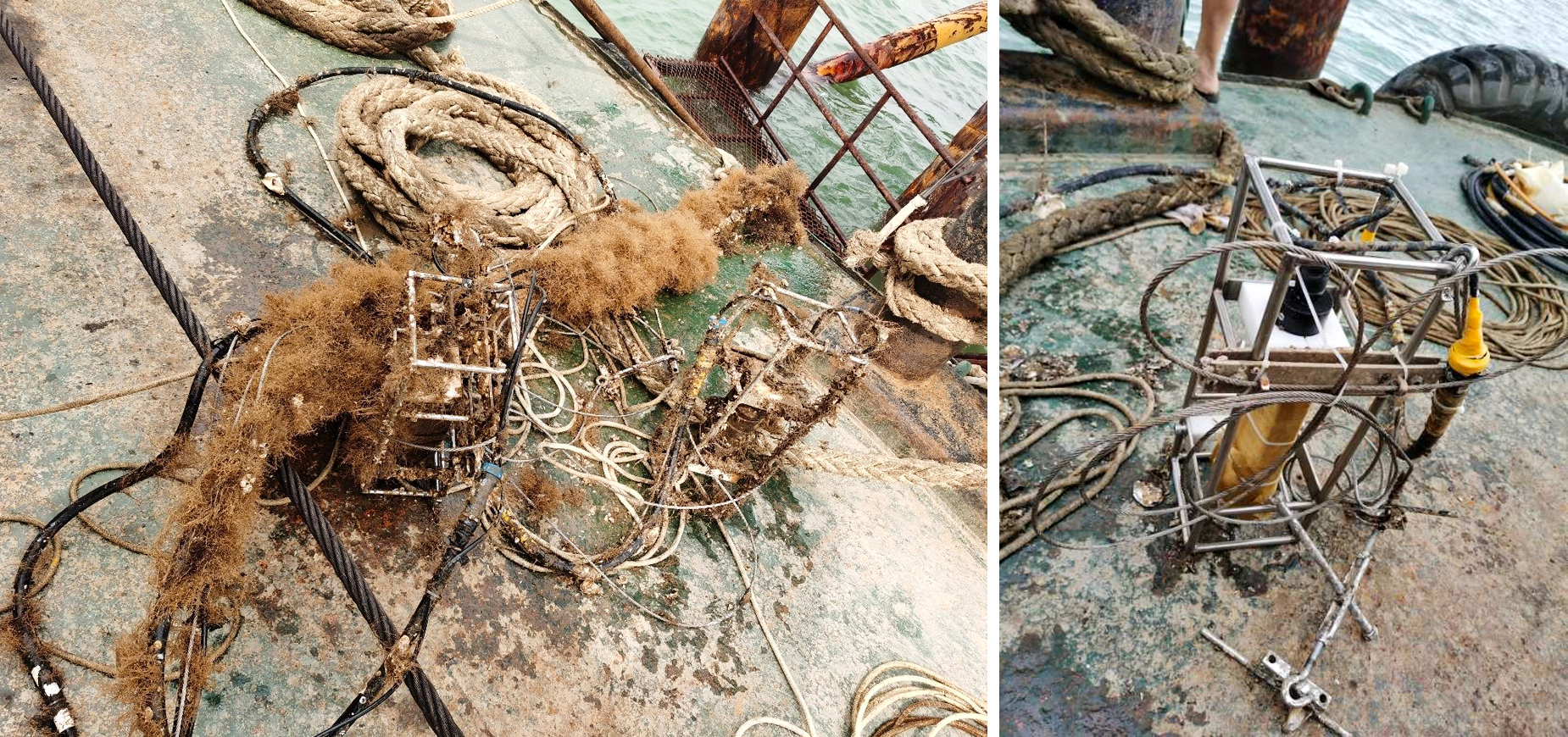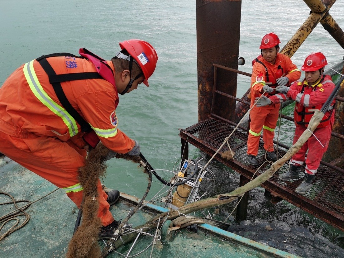 日前,該工程已經(jīng)進(jìn)入海上沉管隧道作業(yè)階段,為更好地做好施工保障工作,我中心傳感器室派出專業(yè)技術(shù)人員赴現(xiàn)場(chǎng)對(duì)設(shè)備進(jìn)行了現(xiàn)場(chǎng)維護(hù)。期間,該作業(yè)海域正處于臺(tái)風(fēng)活動(dòng)高頻時(shí)期,海洋水文環(huán)境變化十分劇烈,在現(xiàn)場(chǎng)維護(hù)工作中,技術(shù)人員克服困難,由潛水員配合,歷時(shí)近8小時(shí),進(jìn)行現(xiàn)場(chǎng)勘驗(yàn)、儀器打撈、儀器運(yùn)行狀態(tài)確認(rèn)、清污、損耗件更新、隱患排除、重新布放復(fù)位等工作,維護(hù)后儀器運(yùn)行和與岸基數(shù)據(jù)站聯(lián)系狀態(tài)良好,測(cè)量數(shù)據(jù)穩(wěn)定。