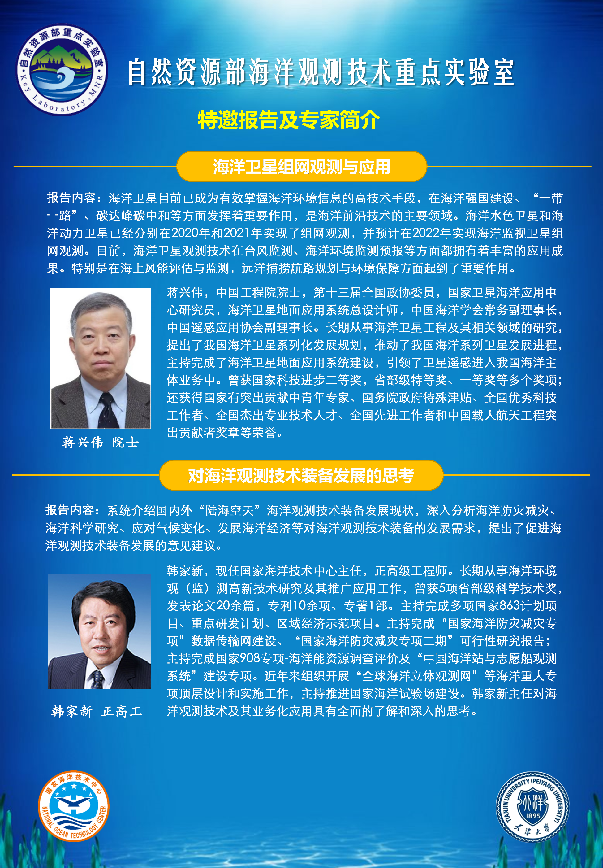 中心動態為推動海洋觀測技術發展,加強海洋科學與技術交叉融合,增進學術交流,打造交流平臺,現定于2021年12月15日舉行自然資源部海洋觀測技術重點實驗室揭牌儀式,同時舉辦自然資源部海洋觀測技術重點實驗室2021年“觀海”學術論壇,論壇主題為“海洋觀測與生態監測技術融合”,邀請中國工程院院士、自然資源部海洋觀測技術重點實驗室學術委員會主任蔣興偉院士和5位專家、4位青年學者就該領域的科技前沿技術和研究熱點進行交流。