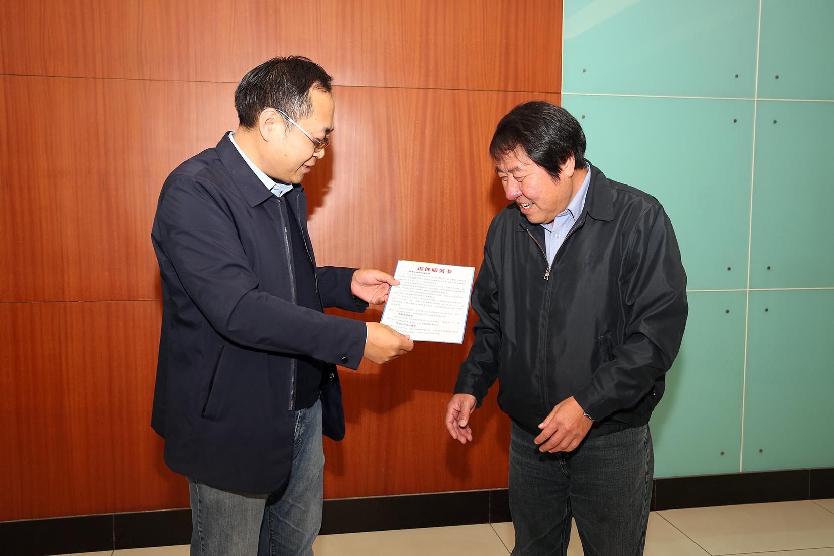 會上,陳武軍、隋軍、王世福分別為韓家新同志送上感謝信、退休紀念品和《退休服務卡》,韓家新同志原所在分會和支部職工代表分別為他敬贈了鮮花和手書對聯,表達中心職工對老領導的愛戴。