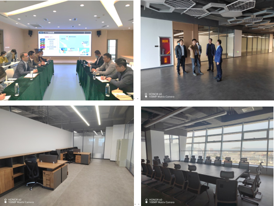 2022年4月27日,海洋試驗場管理中心王項南主任帶隊赴威海,調研“藍貝”辦公場所裝修改造工作進展情況。威海市國際海洋科技城建設推進工作專班負責人、威海市海洋發展局副局長程劍,環翠區副區長王晨旭以及威海市海創投資發展有限公司相關領導全程陪同此次調研活動,并介紹了遠遙淺??萍紴硡^的建設情況及規劃。