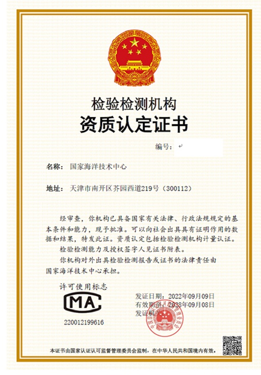 圖 國家海洋技術中心獲國家資質認定(CMA)證書