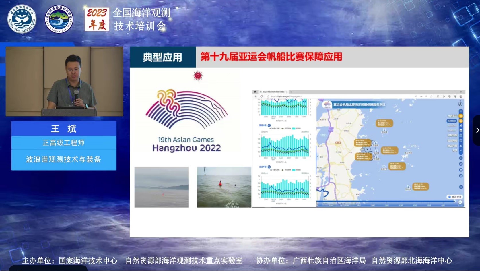 王斌正高級工程師在“波浪譜觀測技術與裝備”課程中,從理論和實踐應用兩個維度介紹了國內外波浪譜觀測技術現狀、我國波浪譜觀測技術突破與典型應用,并探討了我國波浪譜精細化觀測方法以及與數值預報模式之間的結合應用。報告中結合多海域的實際應用結果指出,我國自主研發的“前哨”波浪譜浮標功能性上達到國際先進水平,已經具備取代進口設備開展業務化觀測的能力,可實現波浪譜全要素自動化觀測能力,開展風浪和涌浪要素實時分離,全面提升我國波浪全要素、高精度、智能化觀測能力。