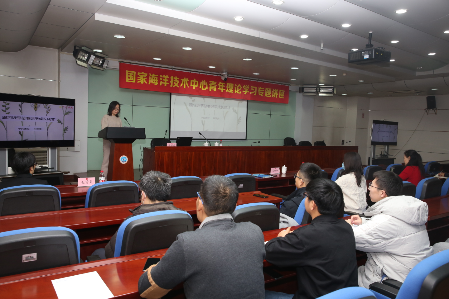 為進一步推動中心青年學懂弄通做實習近平新時代中國特色社會主義思想,跟進學習習近平總書記關于青年工作的重要思想,深入學習宣傳貫徹習近平總書記同團中央新一屆領導班子集體談話時的重要講話精神和團十九大精神,落實自然資源部關于提高青年理論學習成效、提升青年政治素養的有關要求,11月29日上午,中心舉辦青年理論學習講座,特邀中央團校黨委委員、黨群工作部部長、宣講團副團長毛赟美老師現場授課。講座由中心副主任吳姍姍主持,中心全體青年理論小組成員及各黨支部青年委員100余人參加。