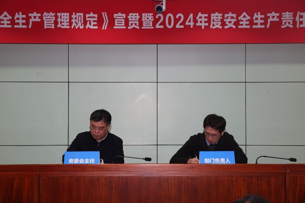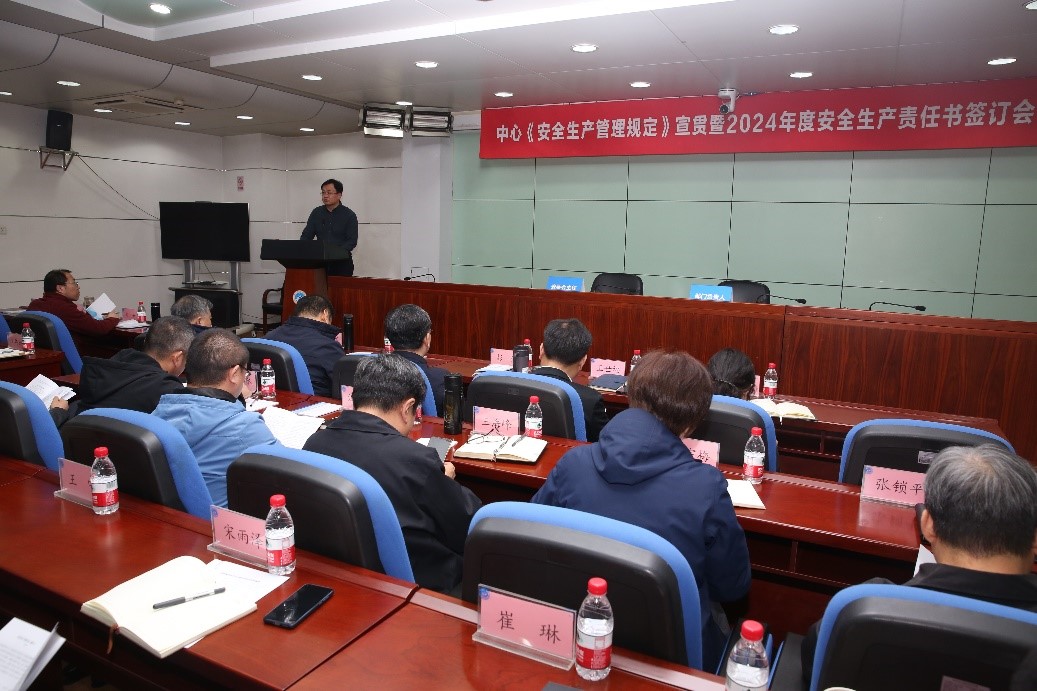 會上,中心安委會主任(中心主任、黨委書記)彭偉同志與中心21個部門主要負責人簽訂了安全生產責任書,對嚴格落實安全生產責任制、強化安全生產管理進行部署和要求。