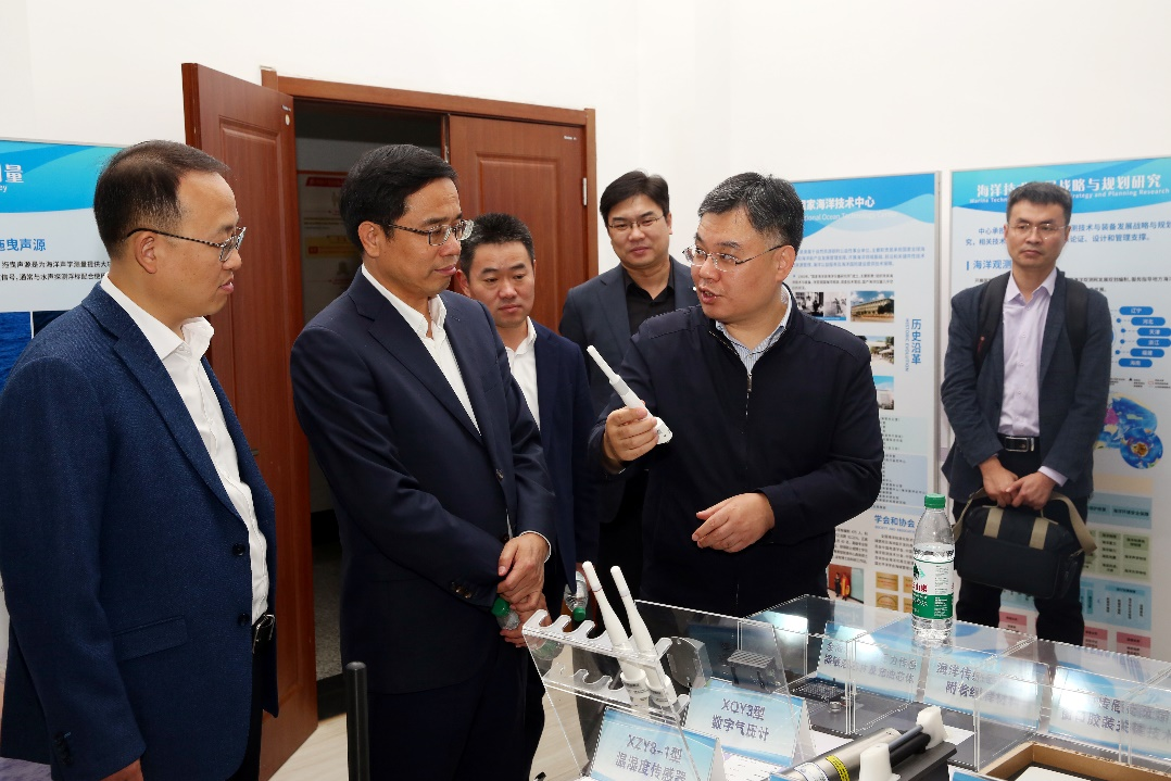 來訪期間,唐海軍局長一行參觀考察中心科技成果展室、海洋觀測動力環境實驗室。天津華北地質勘查局、華勘集團有限公司等有關部門人員隨同來訪。我中心辦公室、業務處、海洋能發展中心、海洋裝備院、海洋資源保護利用研究院等部門負責人參加座談交流