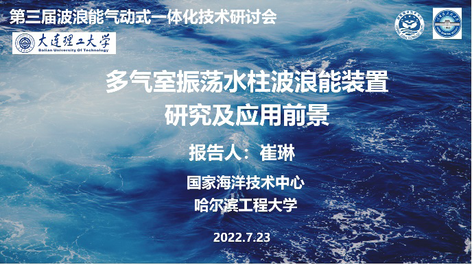 2022年7月23日,應(yīng)大連理工大學(xué)長江學(xué)者特聘教授、海岸和近海工程國家重點(diǎn)實(shí)驗(yàn)室副主任寧德志教授的邀請,我中心海洋能發(fā)展中心崔琳副主任通過線上方式參加了由大連理工大學(xué)主辦的第三屆氣動式波浪能一體化技術(shù)研討會,并就“多氣室振蕩水柱波浪能裝置研究及應(yīng)用前景”為題做了特邀專題報告。氣動式波浪能一體化技術(shù)研討會是我國在波浪能研究領(lǐng)域最具權(quán)威性的專業(yè)學(xué)術(shù)會議,由中國科學(xué)院廣州能源研究所、大連理工大學(xué)和浙江大學(xué)等單位聯(lián)合發(fā)起,至今已舉辦三屆,明年第四屆研討會將在清華大學(xué)水利學(xué)院舉辦。
