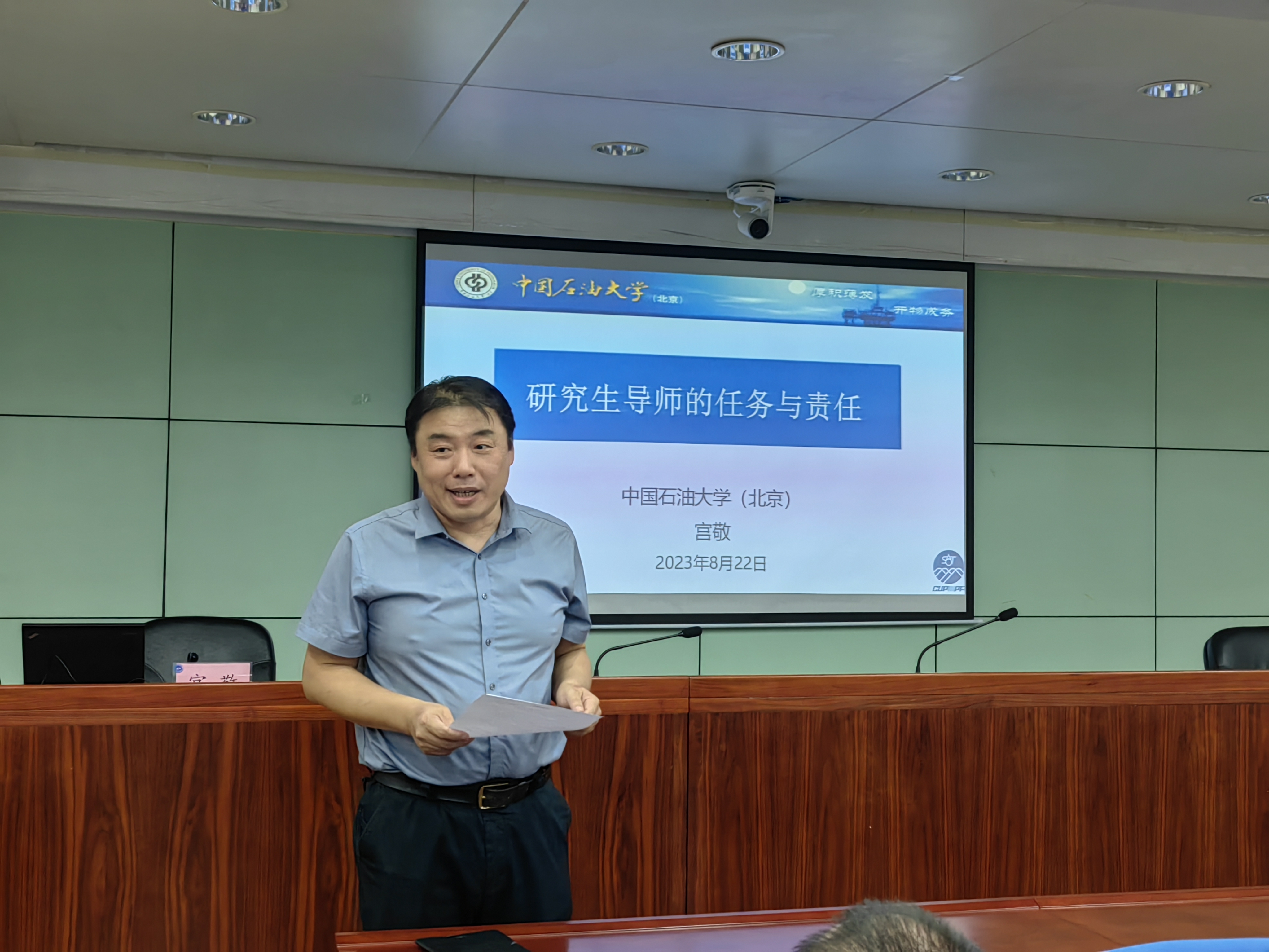 為進一步加強研究生導師隊伍建設,夯實研究生導師第一責任人職責,聚焦研究生全過程人才培養,增強導師立德樹人、潛心育人的責任感與使命感,中心于2023年8月23日邀請中國石油大學宮敬教授,在中心八樓報告廳開展了研究生導師培訓。中心副主任兼總工程師李紅志參加培訓,對主講專家情況進行介紹,明確了此次培訓的目的,同時對導師提出了培訓要求。